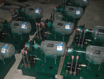 液壓站的工作原理如下:電機(jī)帶動油泵旋轉(zhuǎn),泵從油泵中吸油后打油,將機(jī)械能轉(zhuǎn)化為液壓油的壓力能,液壓油通過集成塊(或閥組合)被液壓閥實現(xiàn)了方向、壓力、流量調(diào)節(jié)后經(jīng)外接管路傳